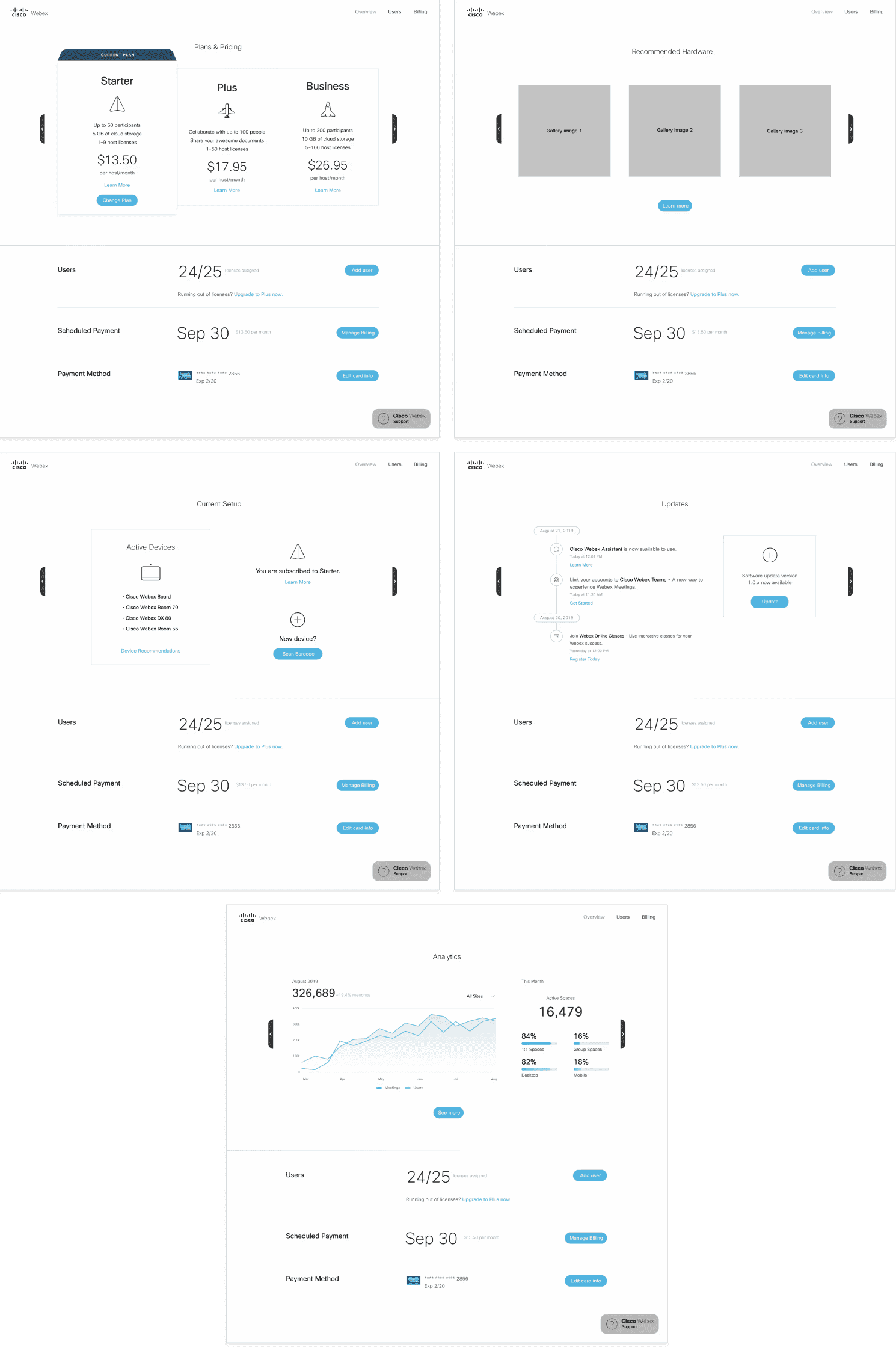 After working with the UX research team to develop methods for user testing, this flow was released under customer beta testing for Webex Control Hub Lite. The designs were improved and refined based on feedback, and a first iteration focused on simplifying and modernizing the plan, billing, and user management experiences was released live to users.