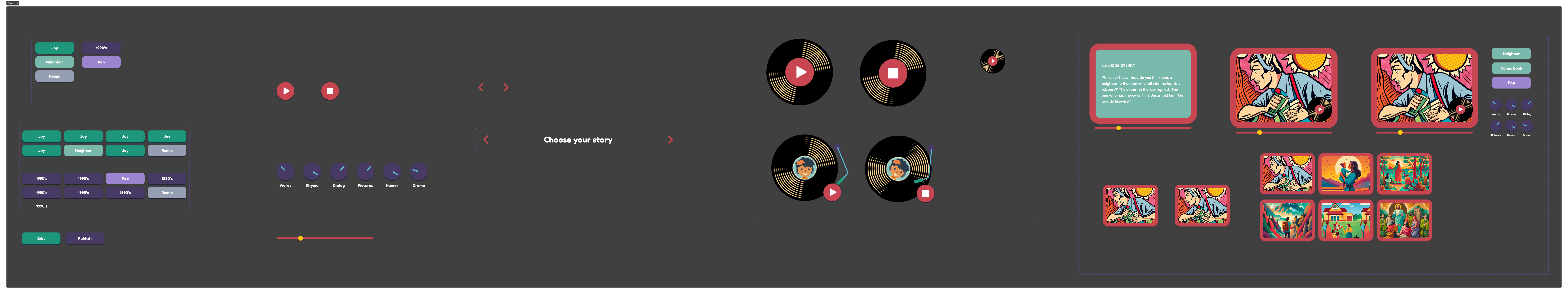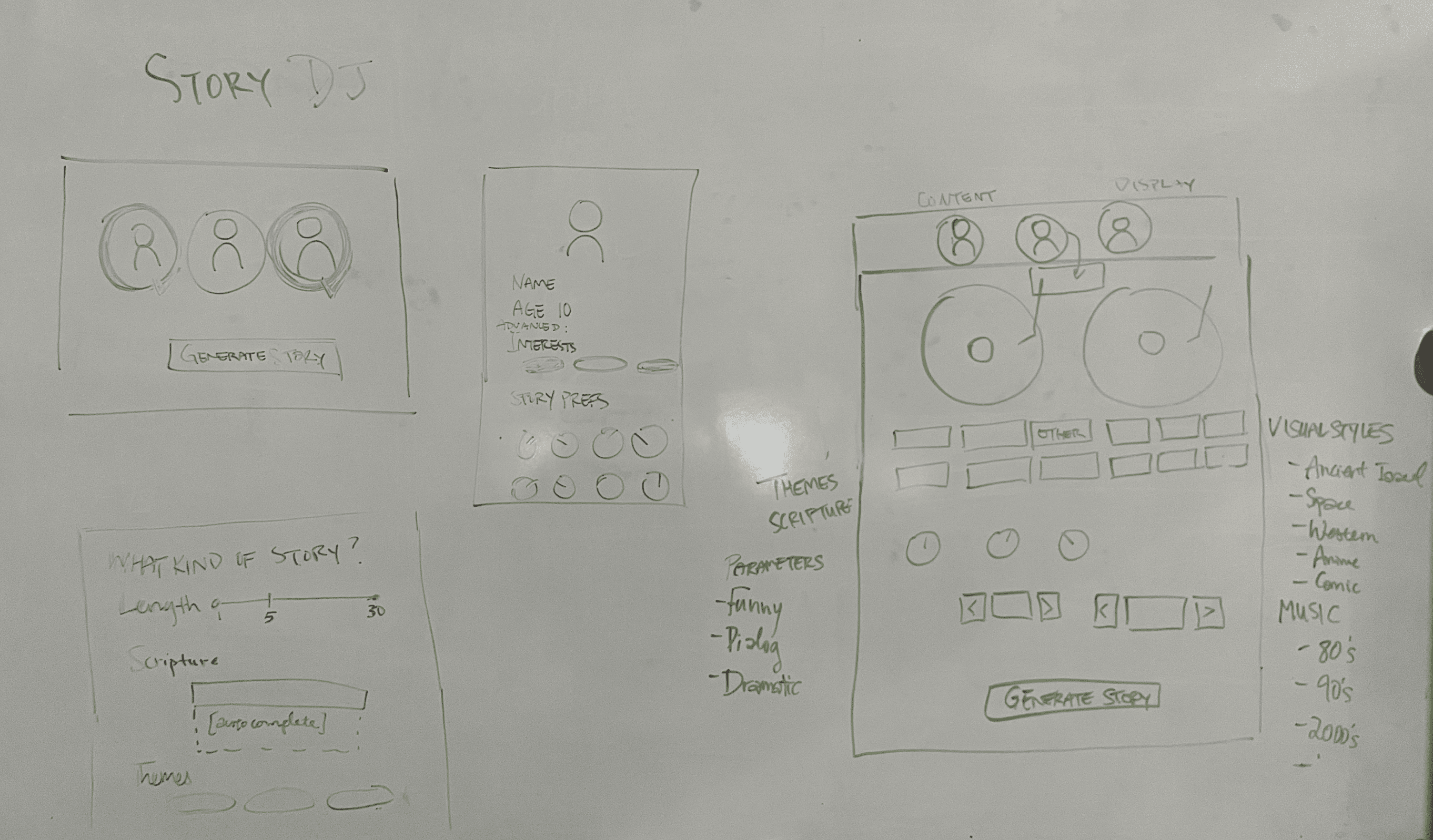 Sketches exploring the idea of a story "remix," like a DJ turntable