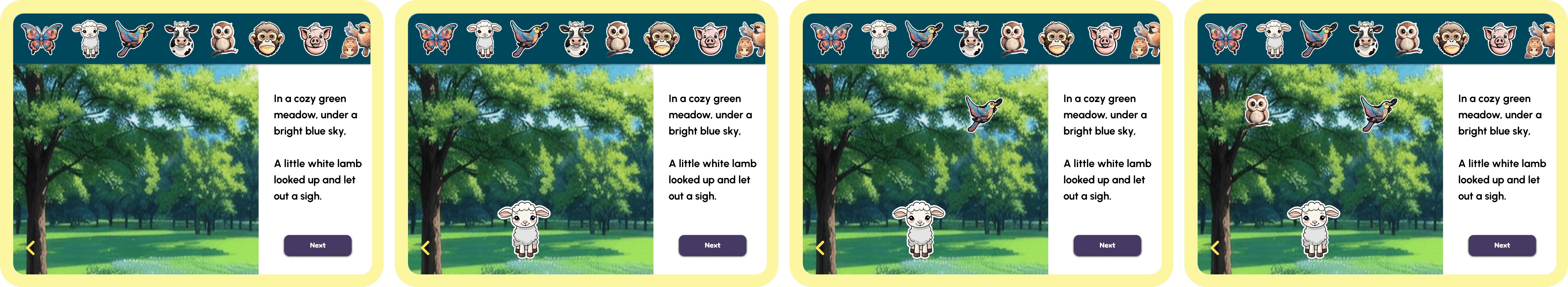 However, due to technical constraints, the AI struggled to render the same character consistently from one page to the next. A sheep with a red scarf on page 1 would become a completely different sheep on page 2. Rendering the landscape backgrounds had similar issues.