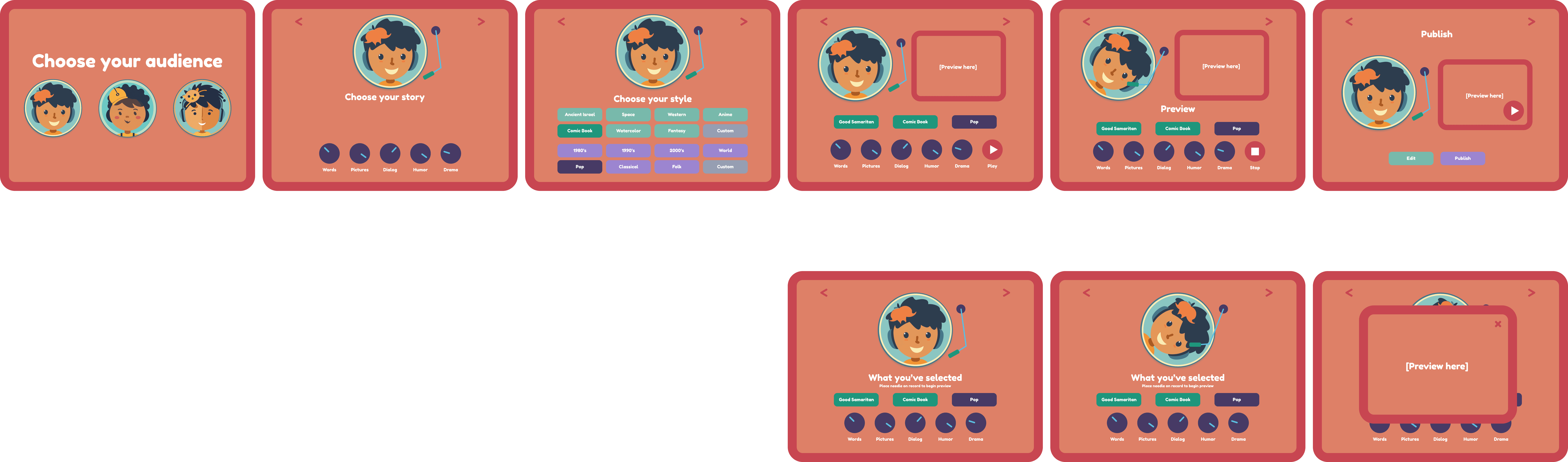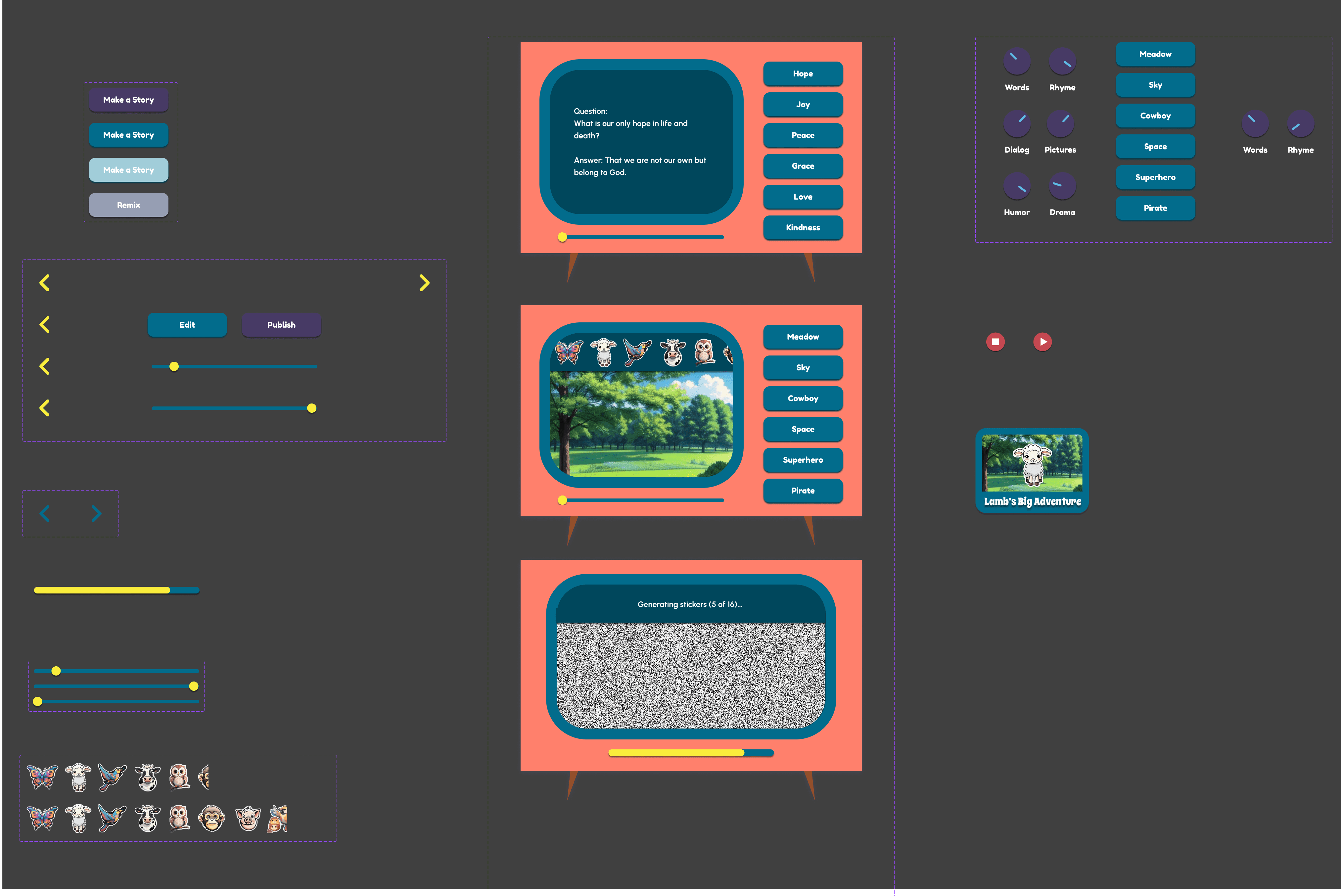 Early explorations leaned into a DJ "remix" metaphor, where parents could spin together curriculum questions and their child's daily experiences to create custom story "tracks."