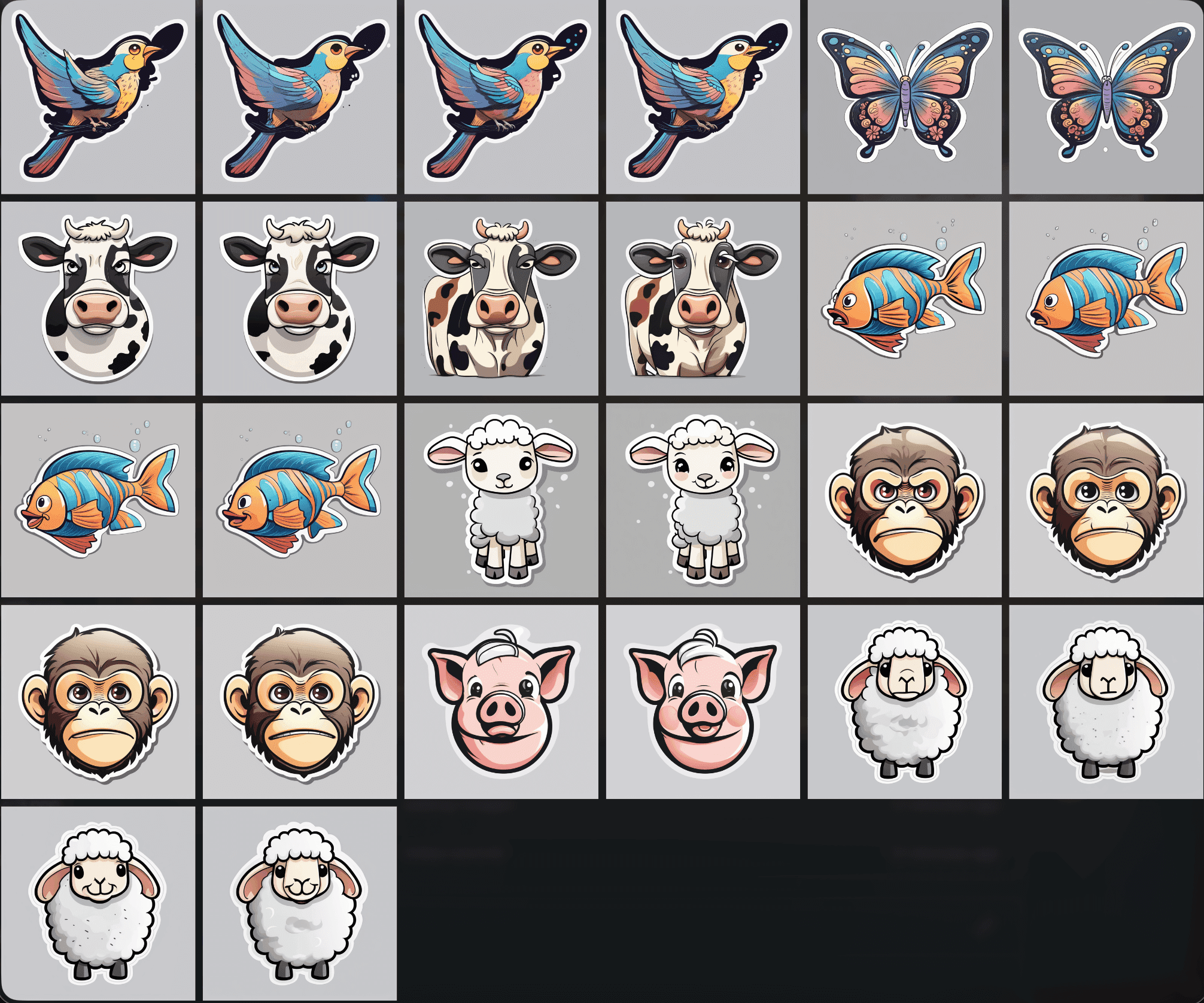 Rendering animal stickers with varying degrees of expression